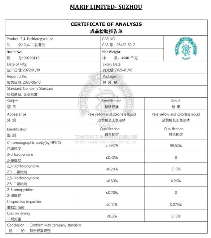 產品詳情: 中文名稱:2,4-二氯吡啶|26452-80-2|2,4-二氯吡啶廠家|